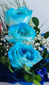 Arranjo com 3 rosas azuis